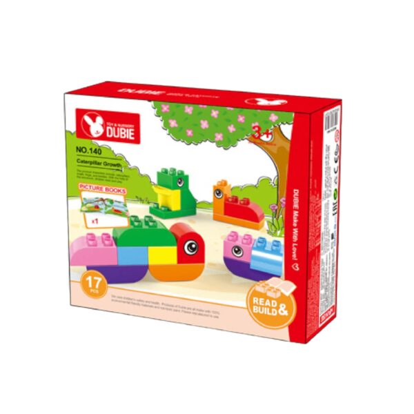 Klocki edukacyjne Wange 140 – Rozwój gąsienicy z książeczką obrazkową, 17 elementów – Kompatybilne z LEGO® DUPLO®