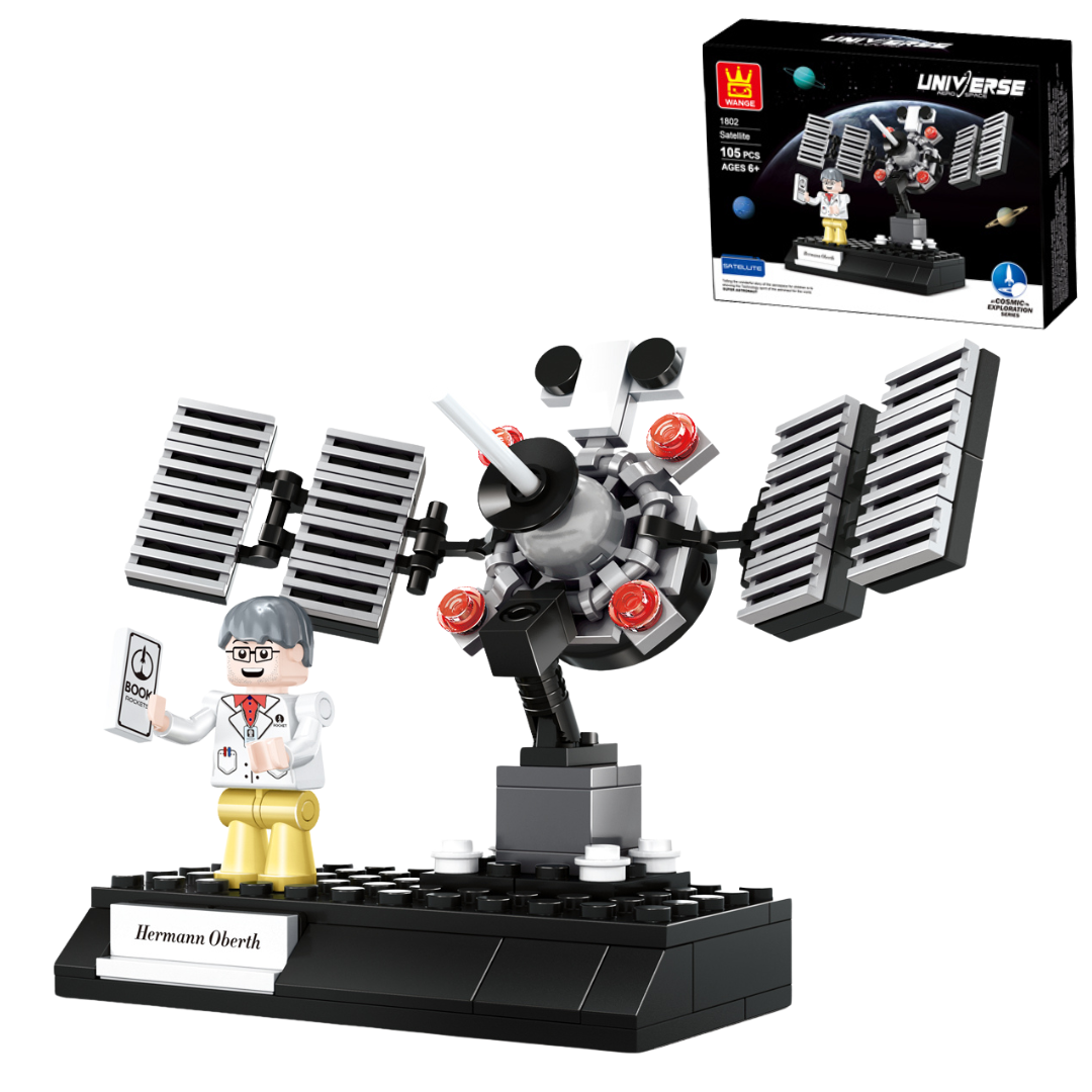 Klocki Wange 1802 – Satelita to fascynujący zestaw z serii Universe, który pozwala dzieciom odkrywać tajemnice kosmosu. Zbuduj własnego satelitę z ruchomymi panelami słonecznymi i figurką naukowca Hermann Oberth – jednego z pionierów techniki rakietowej i badań kosmicznych.