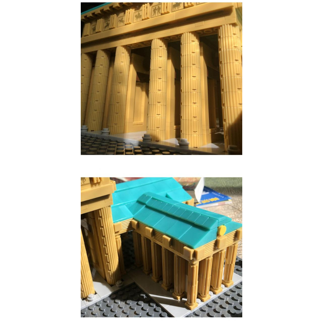 Zestaw składa się z 1531 elementów, które pozwalają zbudować szczegółowy model Bramy Brandenburskiej wraz z charakterystycznymi kolumnadami, zielonym dachem i słynną kwadrygą na szczycie. Całość została odwzorowana z dużą dbałością o detale – od płaskorzeźb nad kolumnami po realistyczne proporcje samej budowli. Model po złożeniu prezentuje się imponująco, mierząc 46,5 cm długości i 23,5 cm wysokości.