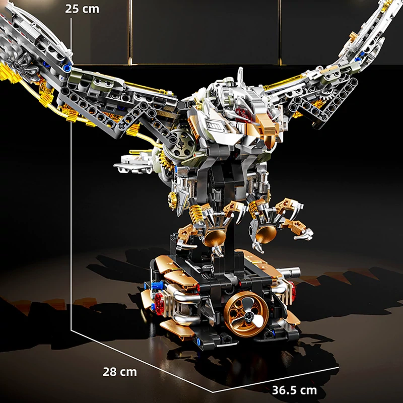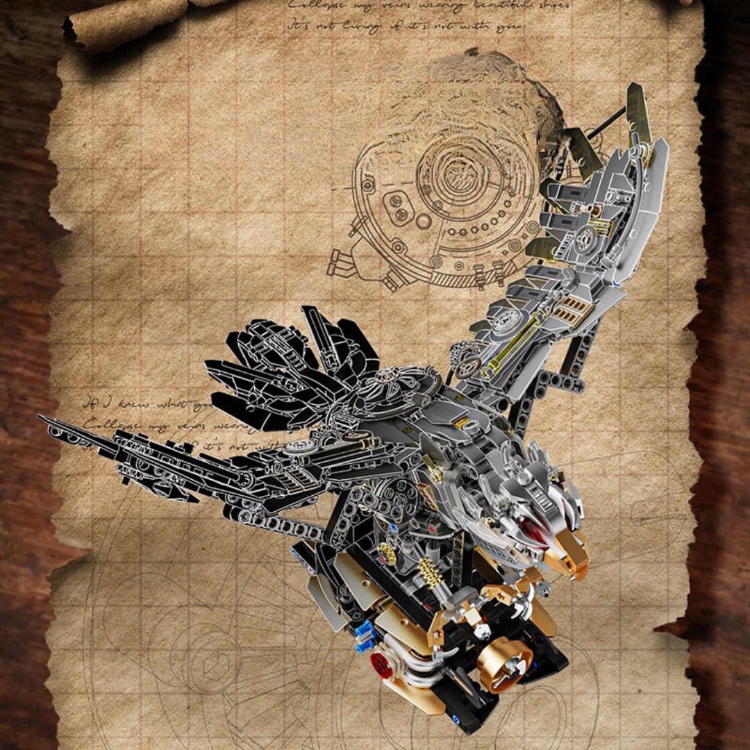 Model Orzeł Mechaniczny składa się z 1168 elementów, które pozwalają zbudować dynamiczną figurę orła z mechanicznymi dodatkami: skrzydła, elementy „pancerza” oraz specjalny mechanizm z korbką, dzięki któremu można poruszać całymi skrzydłami. Dodatkowo w skrzydłach zamontowaną listwę LED, która nadaje wyjątkowego designu. Dzięki temu zestaw staje się nie tylko efektownym modelem kolekcjonerskim, ale również interaktywną konstrukcją, którą można wprawić w ruch. Każdy element wykonano z solidnych części z wysokiej jakości plastiku, bezpiecznego dla dzieci, co zapewnia trwałość i wygodę podczas składania oraz użytkowania. To także produkt, który wyróżnia się niższą ceną względem konkurencji, zachowując wysoką jakość i bogaty poziom detali.